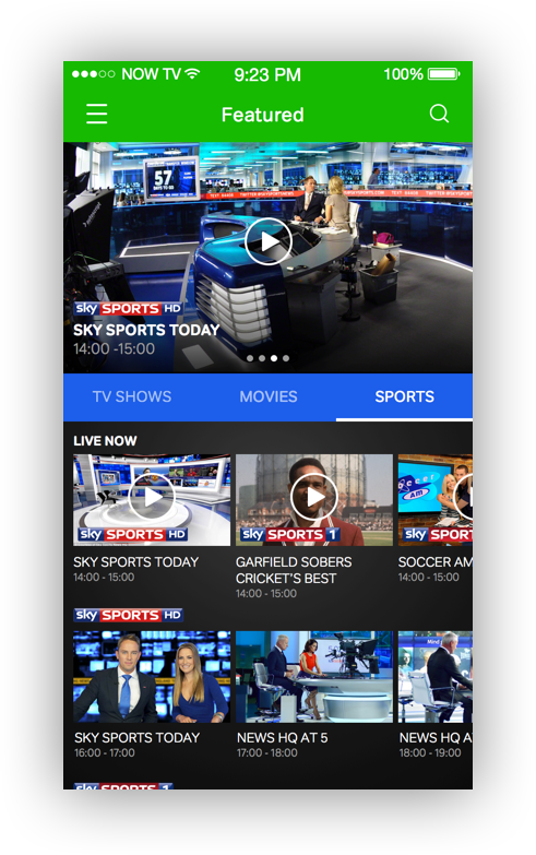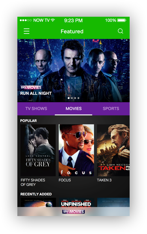 NOW TV wanted me to create an example of a mobile homepage to help there customers quickly navigate and discover new TV Shows, Movies and upcoming Sports events.